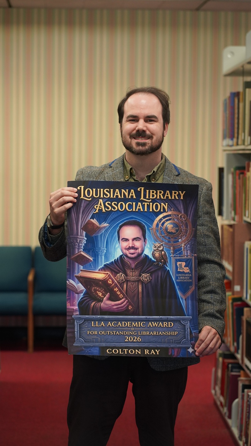 LSU Libraries’ Colton Ray has received the 2026 Louisiana Library Association (LLA) Academic Award for Outstanding Librarianship. The award recognizes librarians whose leadership, service, and professional contributions have significantly advanced academic librarianship in Louisiana.