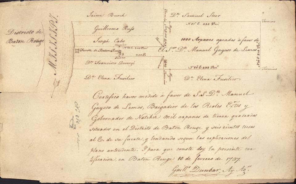 Although Spanish explorers passed the Baton Rouge area on the Mississippi River in 1542, Spanish influence is not evident until 1779, when Spain captured Fort New Richmond and renamed it Fort San Carlos. With the removal of British restrictions on settlement, the Mississippi Valley fell open to invasion by thousands of pioneers from the new United States. Louisiana governor Manuel Gayoso de Lemos received one of the two largest land grants in the Baton Rouge District during this period. The other went to Elias Beauregard.