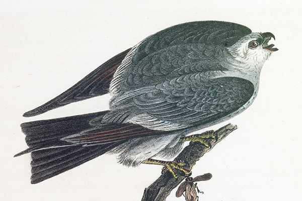 “When clouds of anxious Swallows, returning from the far south, are guiding millions of Warblers to their summer residence; when numberless insects, cramped in their hanging shells, are impatiently waiting for the full expansion of their wings; when the vernal flowers, so welcome to all, swell out their bursting leaflets, and the rich-leaved Magnolia opens its pure blossoms to the Humming-bird; -- then look up, and you will see the Mississippi Kite, as he comes sailing over the scene.”