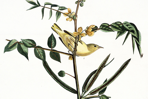 This bird is actually a Yellow Warbler, which Audubon portrayed and identified in plate 95 as Yellow-poll Warbler. Thinking he had a new species, he named it after his friend John George Children, an influential member of the Royal Society of London, one-time librarian at the British Museum, and the editor of two scientific journals.