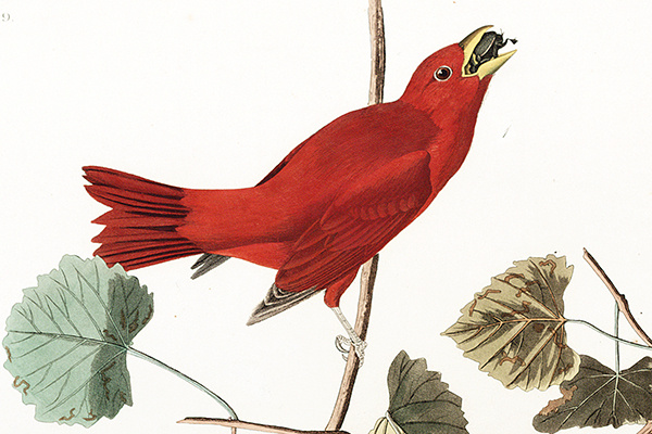 “This beautiful species is destitute of song, and is of solitary habits. . . . The vine on which you see them is usually called the Muscadine. It grows everywhere in Louisiana. . . . In favourable seasons, they are laden with grapes. . . . The skin is thick and very tough, the pulp glutinous, but so peculiarly flavoured as to be very agreeable to the taste. These grapes are eaten by most people, although an idea prevails, in Lower Louisiana particularly, that the eating of them gives rise to bilious fevers. For my part, I can well say, that the more I have eaten of them the better I have found myself.”