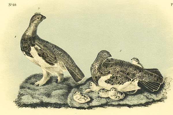 “Although I have not seen this beautiful bird within the limits of the United States, I feel assured that it exists in the State of Maine, as well as in the northern districts bordering on the great lakes . . . whenever we met with them, we observed that the males and the females manifested the strongest attachment towards each other, as well as towards their young. In fact, so much was this the case, that when a covey happened to come in our way the parents would fly directly towards us with so much boldness, that some were actually killed on the wing with the rods of our guns, as they flew about in the agonies of rage and despair, with all their feathers raised and ruffled. In the mean time, the little ones dispersed and made Off through the deep moss and tangled creeping plants with great rapidity, squatting and keeping close to the ground, when it became extremely difficult to find them.”