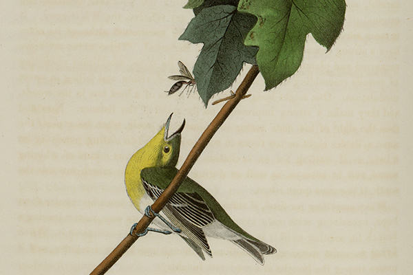 “While the small White-eyed Vireo rambles among the low bushes and brambles of the fields of all parts of the United States, the Yellow-throated species takes possession of the forest, and gleans with equal ease among the branches of the tallest trees, to which it seems to give a marked preference during the spring and summer. It is fond of the quietest solitudes . . . This species is at all times extremely rare in Louisiana, where I have seen it only during early spring or late in the autumn. . . .”