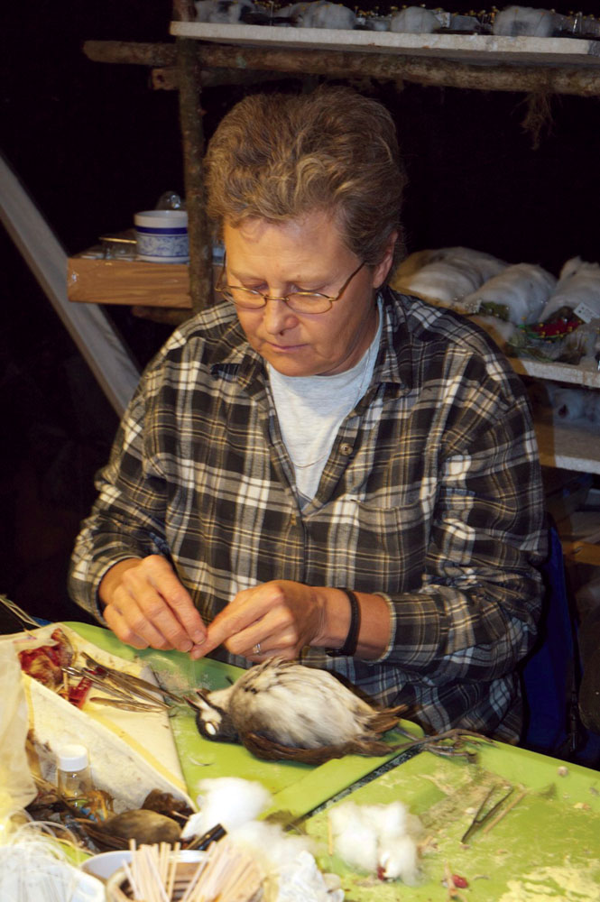Preparing specimens of Jocotoco antpittas (Grallaria ridgelyi), a species discovered only in 1997. The first examples were found in southwestern Ecuador. The specimens being prepared in this photo were collected in northern Peru in 2006, a first record for the country, expanding the bird’s known range (and hopes for its survival).