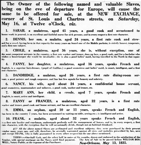 Francophone New Orleans had roots in Europe, West Africa, and the Caribbean. Under the French and Spanish colonial governments, Canadian and Caribbean settlers in Louisiana lent their colonial experience to the newly arrived European soldiers and settlers, the Native American tribes in the colony, and West African slaves to create a complex and uneasy colonial culture. While the 1803 Louisiana Purchase and the appointment of William C.C. Claiborne as the first American governor of Louisiana, foretold of the eventual Americanization of the city, the arrival of various groups of French-speaking immigrants provided reinforcements to Creole New Orleans. In the decade after the Louisiana Purchase, more than 10,000 refugees from the Haitian Revolution arrived in New Orleans. These refugees found in Louisiana a three-caste racial order--white, free people of color, and black slaves--that roughly matched the social order in pre-revolutionary Saint Domingue. The cultural and linguistic connection between France and Louisiana also attracted French immigrants to the state. Throughout the century many political refugees from France also arrived in the city--whether from the tumultuous years of the French Revolution, the rise and fall of Napoleon I, the Revolution of 1848, or of other political and social upheaval on the continent. These “Foreign French” residents strengthened the Francophone culture of New Orleans and often took leadership roles in Creole political and cultural institutions.