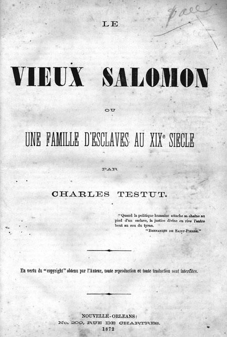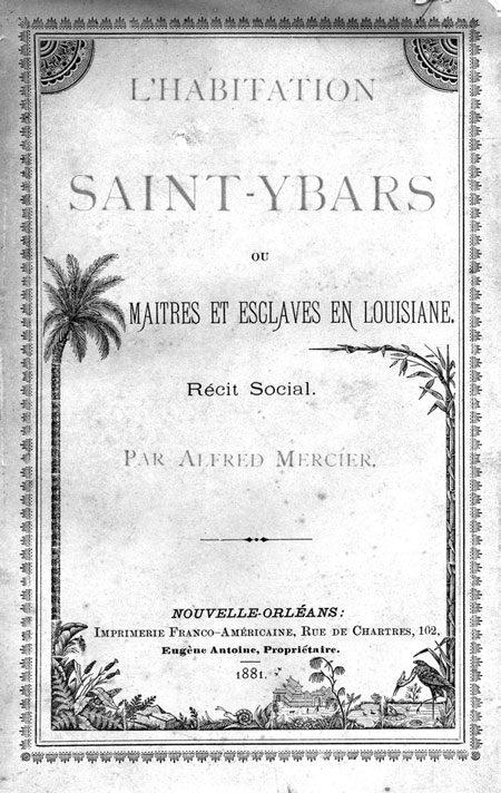After publishing La fille du prêtre (The Priest's Daughter) in 1877, a novel that tackled the issue of ecclesiastic celibacy, Mercier was accused of being a free thinker and was nearly ostracized from the literary community in Francophone New Orleans. In 1881 he published L'Habitation Saint-Ybars (The Saint-Ybars Plantation). Reviews of this “récit social” (social narrative) praised Mercier’s liberal-mindedness and the boldness that drove him to compose much of the novel’s dialogue in the Louisiana Creole language. Grateful for his devotion to the French cause, the French government elected him “officier de la Légion d’Honneur” (officer in the Légion of Honor) in 1885. Mercier died in 1894 at the age of seventy-eight.