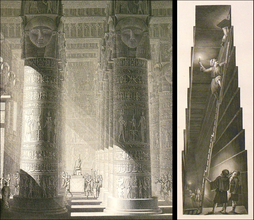 Did you know you can travel from the delta of the Mississippi to the delta of the Nile... just by walking through the doors of Hill Memorial Library? That's what students in Professor Darius Spieth's History of Interior Design class did on September 9, when they came to Special Collections to view the Description de l'Égypte. Published in the wake of Napoleon's invasion of Egypt in 1798, this huge, multi-volume collection of engravings is one of the largest and most impressive books ever produced. Part science, part history, part propaganda, it helped trigger a craze in Europe and America for all things Egyptian—a craze known as Egyptomania. The book was especially influential in the fields of architecture and interior design. In 1798, the French government, under Napoleon Bonaparte, saw an opportunity to take control of Egypt. Napoleon realized that conquering the land of the pharaohs would provide France with a valuable colony, block a potential route to India for the British, and, best of all, add to his personal glory. But he also saw it as an opportunity for scientific and historical discovery. Although the French military campaign in Egypt ended in disaster a little over a year after it started, the small group of 151 scientists and artists that accompanied Napoleon’s army enjoyed more success, if no less hardship. Nicknamed the corps de savants, they had been enlisted to explore all they could about Egypt, which despite its proximity to Europe, was still a mystery. Their numbers included botanists, zoologists, chemists, physicians, engineers, antiquarians, and artists. Wherever the French army went, the “savants” followed, meticulously collecting data on everything from pyramids to palm trees.