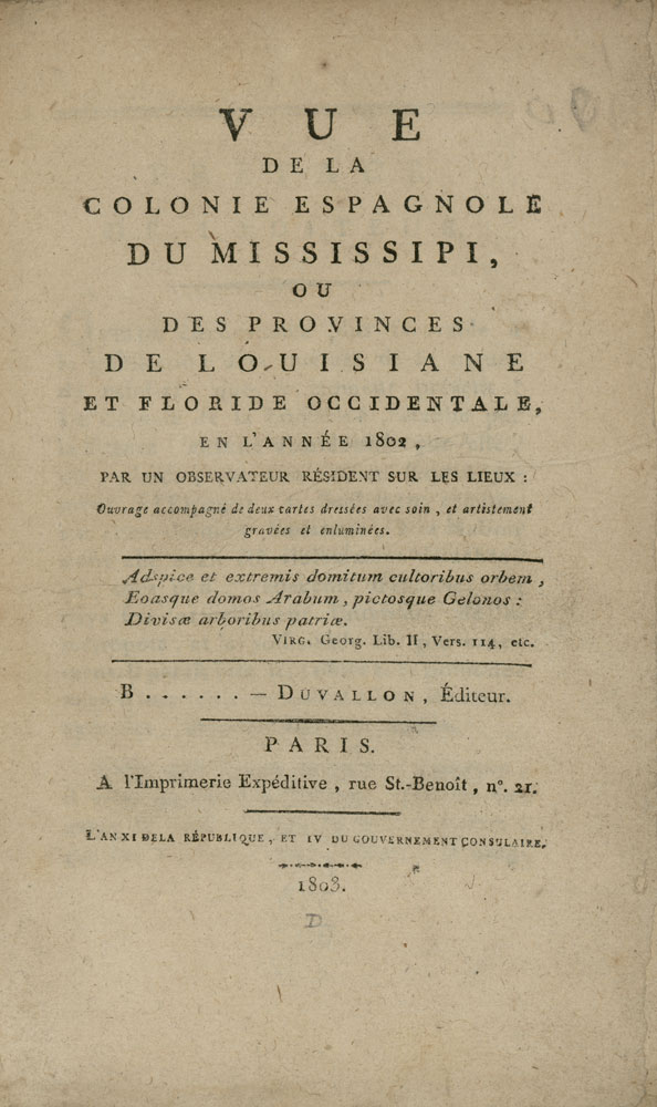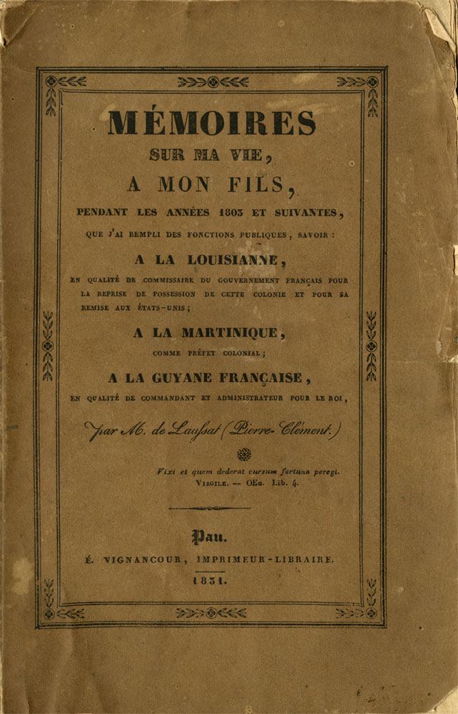 Born in 1756 in the Pyrenees region of southern France, Pierre-Clément de Laussat was appointed governor of Louisiana in 1802. His hopes for a distinguished administrative career were dashed, however, when, not long after his departure for his new post in January 1803, Napoleon Bonaparte sold the vast colony to the United States to fund his wars in Europe. Laussat spent just over a year in Louisiana, overseeing its official transfer to the Americans. He later wrote about his experiences in this rare memoir privately published for his family shortly before his death.