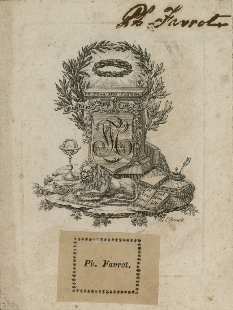 Hopefully he would be pleased that some of his books have survived and are still being used by students and scholars in Louisiana more than two-hundred years later. Laussat’s bookplate bears a Basque inscription, “He Plaa Diu Tayudi” (“Do well, God will help you”), followed by a quote from Boileau, “Le vrai seul est aimable” (“Truth alone is lovely”).