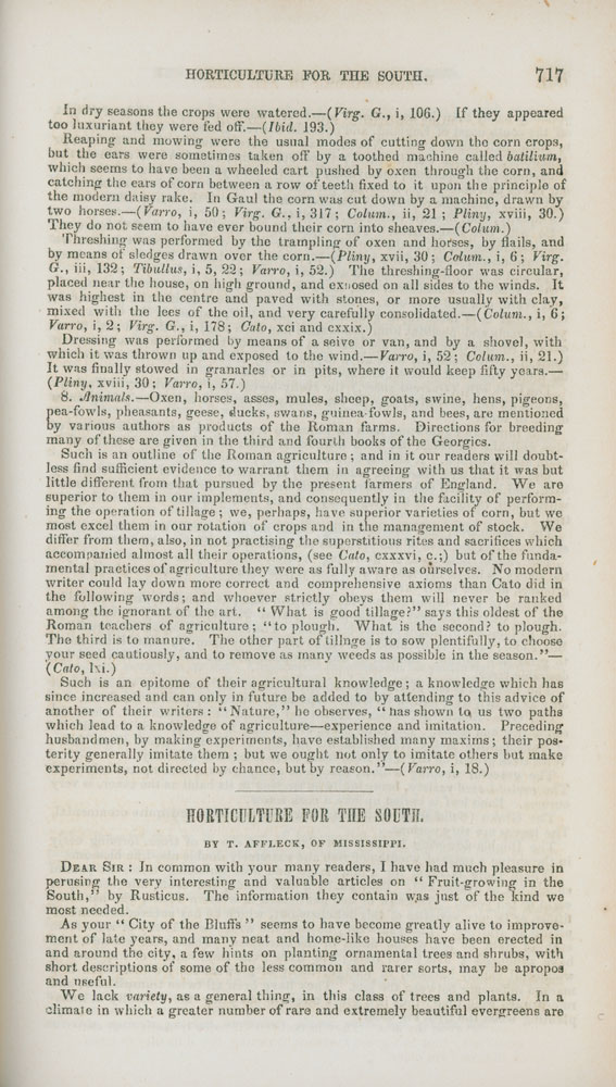 Thomas Affleck, “Horticulture for the South,” DeBow’s Review 19:4 (February 1856), 717-719.
