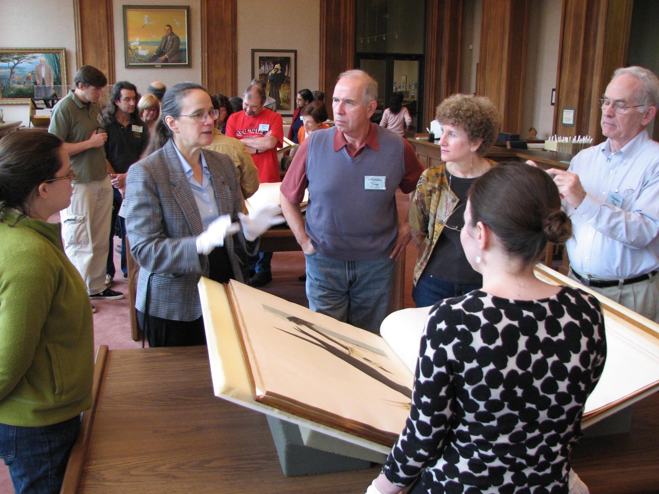 The Libraries held the last Audubon Day in 2007, when it was determined that the four volumes could no longer be shown safely due to structural damage to the bindings and other problems with individual plates. In 2008, the Coypu Foundation made a donation of $99,000 to enable conservation of this work by Etherington Conservation Services. The work was completed and the final volume returned to the library of December 28, 2009. Both visitors and staff thoroughly enjoyed the “welcome home” event!