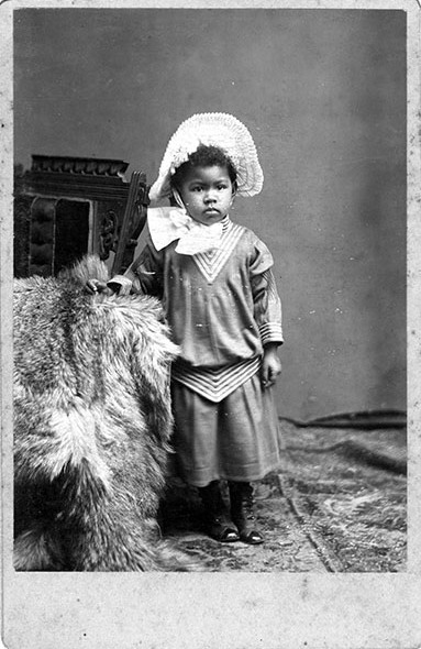 The rest of the studio portraits were not identified in any manner but the subjects were similar to the others. Even better, four of the images are of children, again dressed for the camera. “It’s the children’s shoes that tell the tale of their economic status,” says Martin. “The shoes appear to be custom made. Given the way children’s feet change size so rapidly, a pair of these shoes would not have fit very long. New shoes ever year or less would have been a huge expense.”