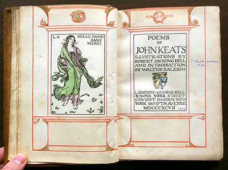 Keats was also admired by the Pre-Raphaelites and, in the 1890s, by followers of the Arts & Crafts movement, who repackaged his works, imbuing them with a sense of medievalism but also a dreamy modernism. Our list of recent acquisitions includes a good example of this: Isabella, or the Pot of Basil (1898). Reminiscent of William Morris’s Kelmscott Press edition of the works of Chaucer, it features elaborate borders and black-and-white illustrations by W.B. MacDougall.