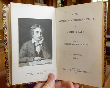 Students in a course on English Romantic Poetry recently visited us to view materials from our collections and ask questions just like these. We were pleased to be able to offer them several nineteenth-century editions of the poetry of John Keats, which we acquired during the fall semester. Here are some highlights...