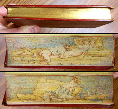 Despite the sexual repression of the day, many Victorians were drawn to Keats because of his sensuality. One of our recent acquisitions is a striking example of how people in the nineteenth century associated him with the erotic. LSU’s copy of The Poetry of John Keats (1853) features a double fore-edge painting showing a man and a woman making love. Hidden by the book’s gilded edges, the paintings are only visible when the text block is fanned out. For one reader, this book—and, by extension, Keats’s poetry—was clearly an intimate object.