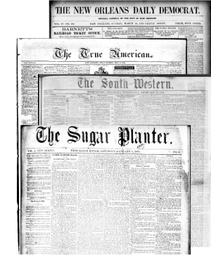 The Digitizing Louisiana Newspapers Project (DLNP) is pleased to announce that an additional four historical Louisiana newspapers have recently been uploaded to the Library of Congress's Chronicling America site. The New Orleans Daily Democrat, The South-Western