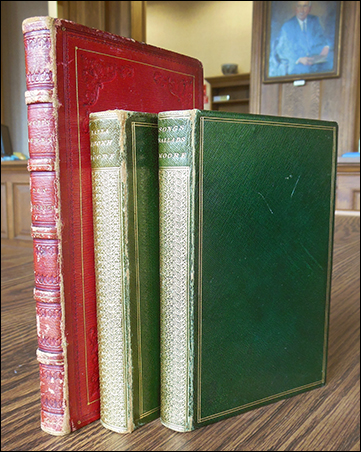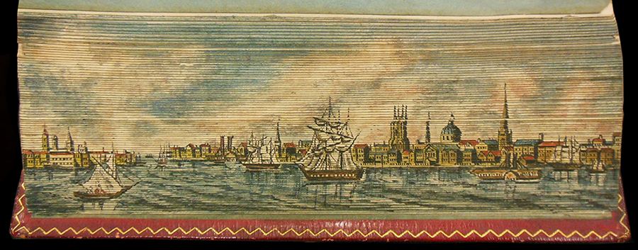 Although these books were printed in 1811, 1854, and 1855, the fore-edge paintings were put on much later. They are thought to have been done in the 1940s by an unknown English artist whom Jeff Weber, author of Annotated Dictionary of Fore-Edge Painting Artists & Binders (2010), refers to as the "American City View Painter."