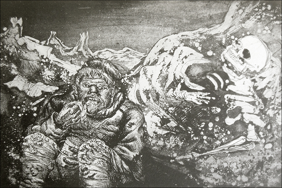 More than 150 of Raemaeker's drawings were published in two large-format limited editions now owned by Special Collections: The Great War, A Neutral's Indictment (1916) and The Great War in 1916, A Neutral's Indictment (1917). The contents of each volume range from caricatures of German leaders and depictions of major events of the war (like the sinking of the Lusitania), to allegorical representations of death and abstract commentaries on war-related social issues such as the decline of Christianity and even alcoholism.