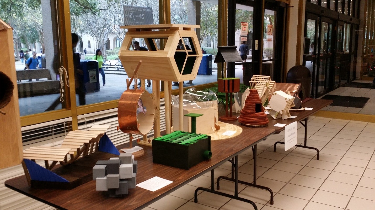 It's For the Birds! Interior design birdhouse projects displayed in Middleton Library