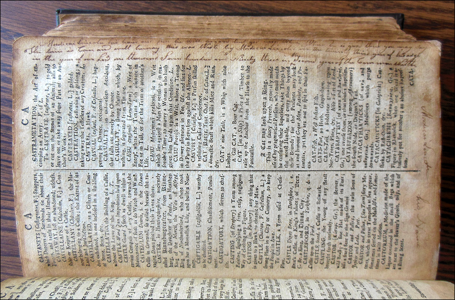 Regardless of whether Lincoln ever read from his uncle's copy of Bailey's dictionary, it is a testimony to his legacy that so many have wanted this to be a tangible relic of his life. Even if it is not what some have claimed, the book does, in fact, advance our understanding of Lincoln. Though he was unusually bright, those around him were not all as suspicious of "book larnin'" as his father, Thomas, is supposed to have been. At least one other member of the Lincoln family, we can be sure, found a dictionary to be a valuable object. Did he simply use it to better understand the Bible, or did he have grander aspirations? We may never know, but this small window into the world in which Lincoln grew up is a fascinating example of the kinds of questions scholars can raise by exploring the riches of the LSU Libraries' Special Collections.