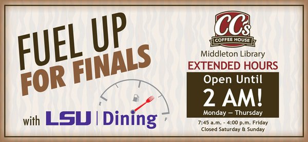 Take a photo and share it on Instagram- tag @lsulibraries and use #LSUfinals16 and #clubmid for a chance to win a gift basket. The themes for the challenge are: