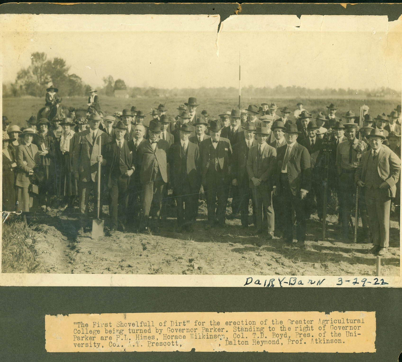 Construction began on March 29, 1922 with the groundbreaking for the dairy barn. Barns and other buildings associated with farming were constructed first to keep with LSU's mission as an agricultural university. The campus was substantially ready for classes by fall of 1925. A three-day formal dedication ceremony began on April 30, 1926 featuring speeches by various state dignitaries including former governor John M. Parker, who was in favor of constructing the new campus, and former US Senator Edward J. Gay. The ceremony also included performances by the LSU Cadet Band and the Stanacola (now Exxon) Refinery Band. It ended with a track meet between Tulane and LSU and an “old-fashioned Southern barbecue” on the Indian mounds.