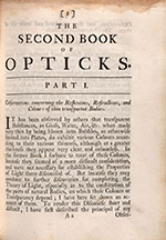 In 1704, physicist Isaac Newton published his second major book, Opticks: or a Treatise of the Reflexions, Refractions, Inflexions and Colours of Light. Also Two Treatises of the Species and Magnitude of Curvilinear Figures. Considered one of history's great scientific works, it first defined five colors of the spectrum as red, orange, yellow, green, blue, indigo, and violet. LSU Libraries Special Collections has a first edition of the book.