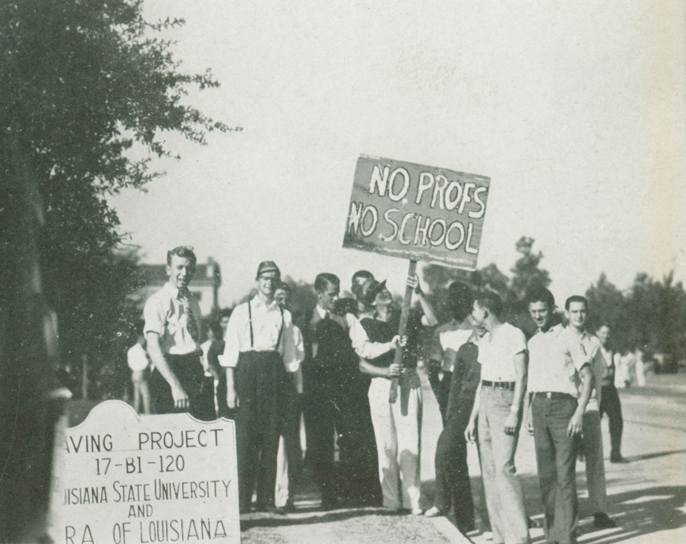 Information sources: The Reveille; Mike and Higginbotham, LSU Photograph Collection; students at roadblock, Gumbo 1937.