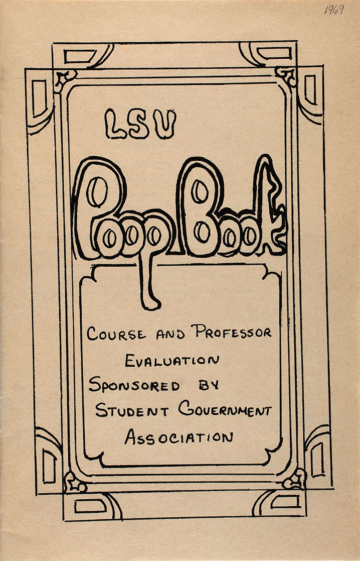 Sponsored by the Student Government Association and drawn from student evaluations, the Poop Book dished out the dirt on classes and professors. Students described course content and workload; offered recommendations on which classes to take or avoid; and evaluated their teachers for their preparation, class presentation, and grading. Unlike modern social media, the Poop Book didn’t print every irrepressible comment, but rather summarized the majority opinion when it could be deduced.