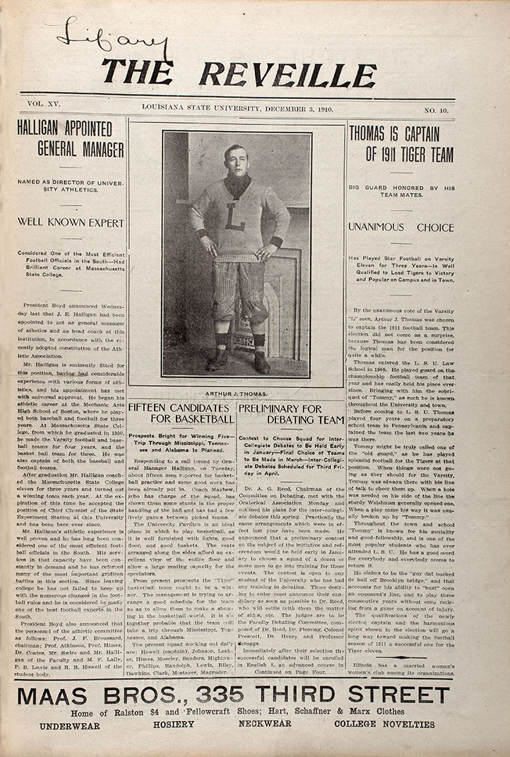 Perhaps aware of an earlier Reveille on campus—a brief faculty journal from 1872—the cadets of Louisiana State University inaugurated the new Reveille, a four-page weekly newspaper, on January 14, 1897, charging one dollar for a year’s subscription. You already know what it does.