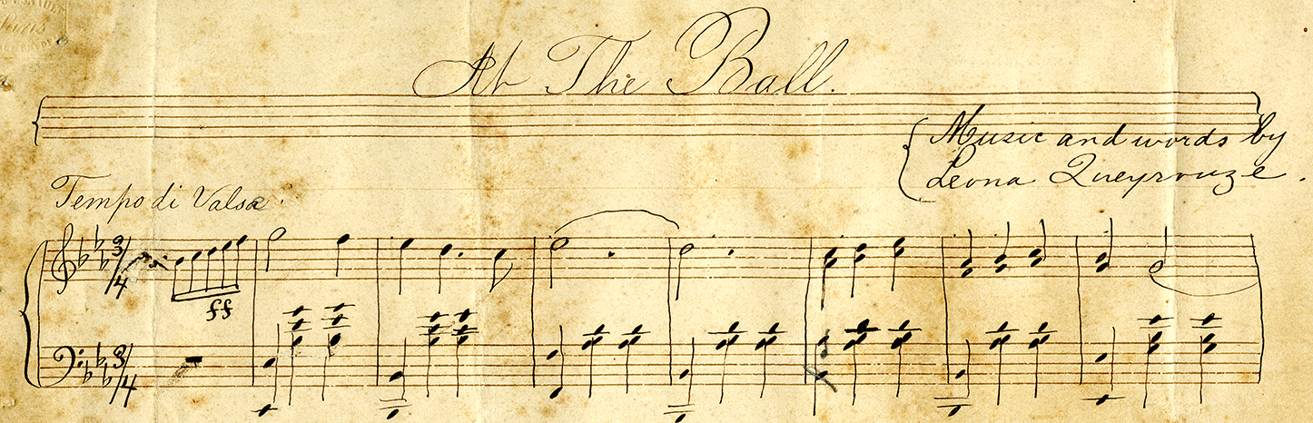 - A music manuscript by Léona Queyrouze Barel, the noted writer, poet, essayist, and musician of New Orleans (see a snippet below)