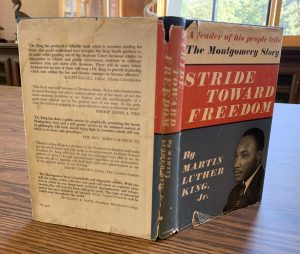 One acquisition that seeks to fill in these gaps is Martin Luther King, Jr.’s 1958 book Stride Toward Freedom about the Montgomery, Alabama bus boycott. (In fact, this book was purchased in honor of African American history month in 2020, but a shipping mistake and then COVID shutdowns mean that it gets to make its debut this year.) This copy preserves the original book jacket, which gives a sense to how the book circulated and King was perceived decades before his lionization as a martyr to the civil rights movement.