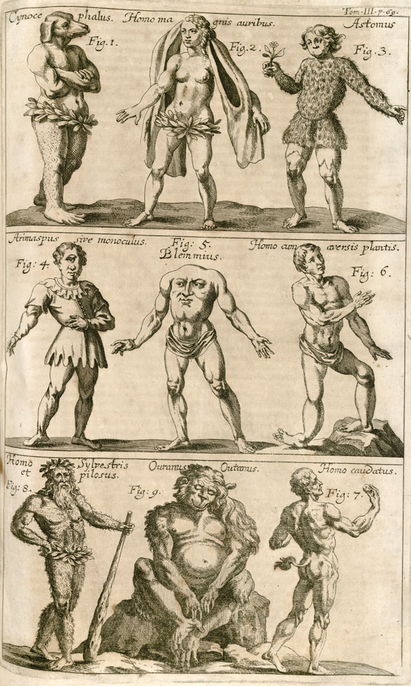 Zahn also included illustrations of giant snakes, a unicorn, and more than a dozen quasi-human figures with wings, snouts, tails, claws, and double heads. A chronology, beginning in the year 123 and ending in 1692, lists dozens of examples of “monstrous” births. Although clearly cases of severe birth defects, it is easy to imagine how reports of such cases were exaggerated in the retelling.