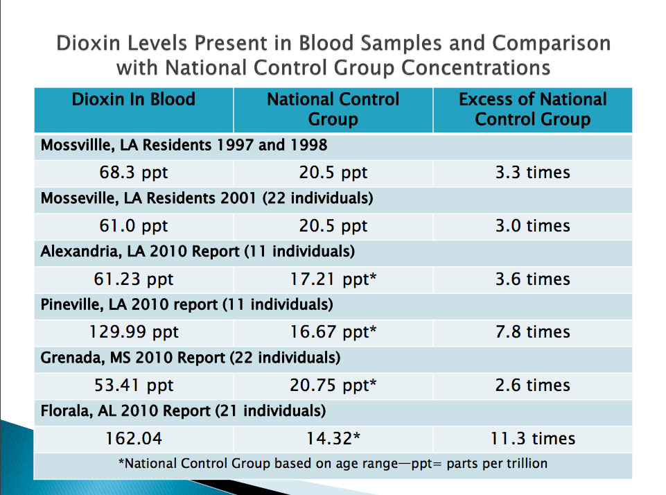 DRAGOON: In 1997, I believe that's when they were doing blood tests and finding that Mossville residents had a higher level of dioxin in their blood?