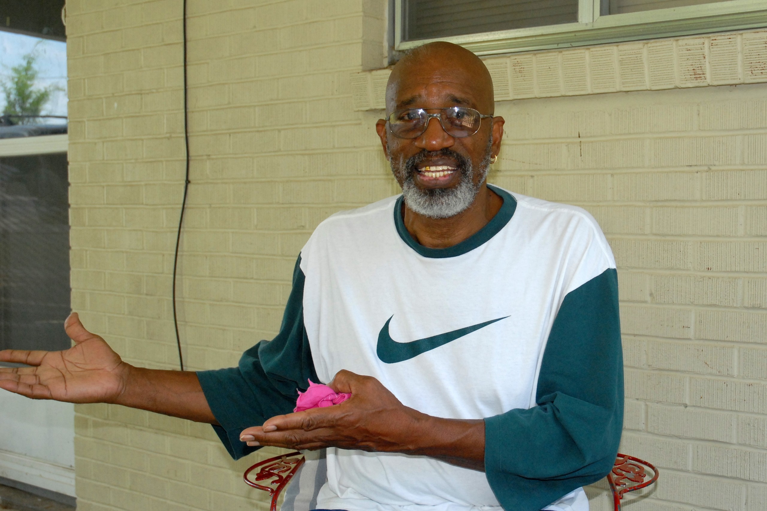 Cusher: On Claiborne Street, in the Lower Ninth . . . Ninth Ward. And after the hurricane, I don't have pictures of any of my children now. Don't have my children, don't have their pictures. They're gone, the pictures are gone, the memories . . . I still have the memories. But nothing tangible. So I'm here [in New Roads, Louisiana] trying to start over again. At sixty-seven. Because there was a time I gived up. I mean, like I said, everybody was dead around me. I didn't know where my friends were. I didn't know where my grandchildren were. I didn't know anything. I couldn't get a place . . . Even out here, there's some people that was kind of discriminating against me. But I couldn't find a place to rent, man. Wouldn't accept my dog. But, like I said, when I got on low, not energy, I guess it was energy, but I was about ready to give up. They was right there, "No, Mr. Cusher. No, no. There you go." Those two angels [Cusher and Jewell laugh]. They don't like me to talk about them but I got to. I told you they gave me . . . they collected $27,000?