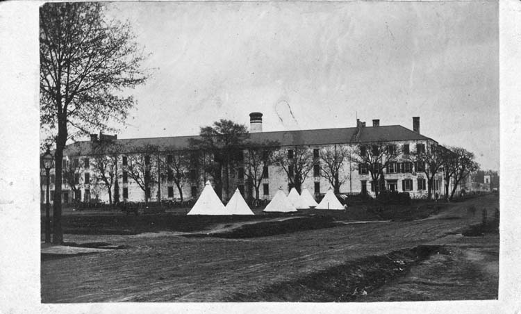 Frontview State Penitentiary In foreground tents of Battery L 1st Artillery.