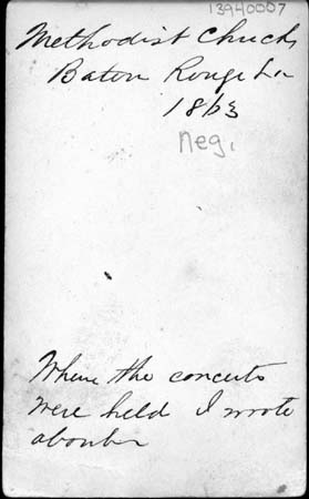 Methodist Church Baton Rouge La, 1863 Where the concerts were held I wrote about.