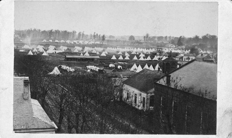 center camps of 2nd La & 30th Mass. In foreground battery C. 5th Regimental artillery.