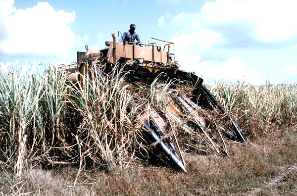 Modern cane harvester in action. Photograph by John Wozniak, LSU Agricultural Center