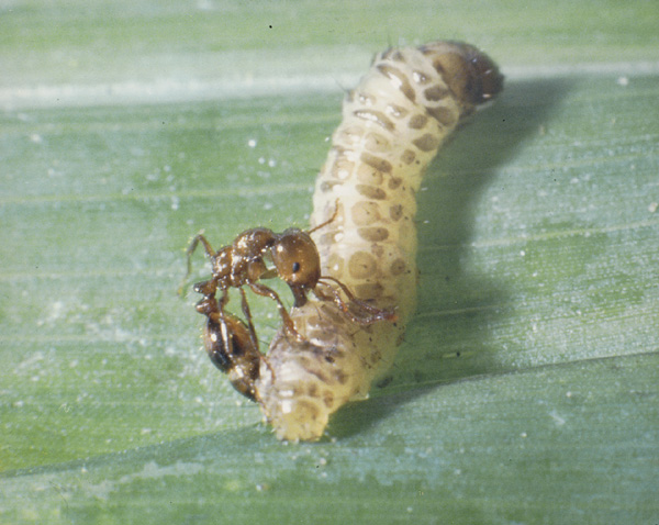 An example of Integrated Pest Management in which Lepidopterous larvae on sugarcane weeds provide alternate food sources to build up early season fire ant populations and enhance control of the sugarcane borer. Courtesy of LSU Department of Entomology